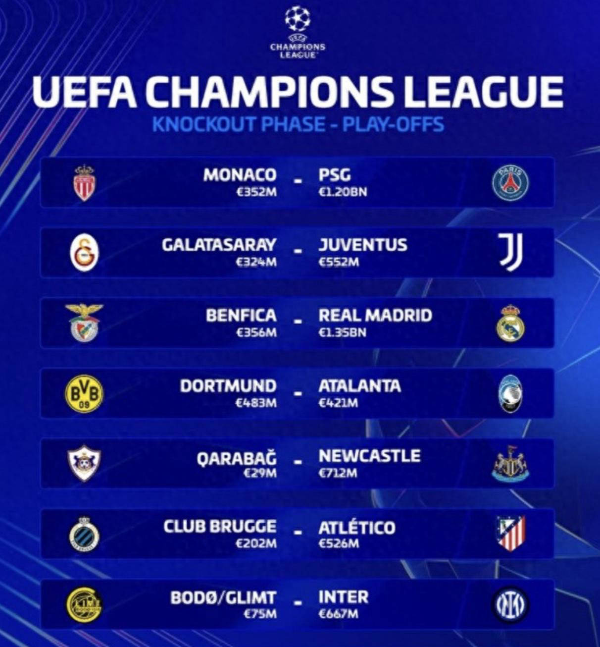 多特蒙德将迎战亚特兰大,虽然双方实力接近,但多特蒙德作为常年欧冠淘汰赛参赛者,经验丰富,主场优势显著,是他们晋级的关键。纽卡斯尔联幸运抽到卡拉巴赫,这支来自阿塞拜疆的球队刚被利物浦6-0横扫,实力较弱,纽卡晋级希望极大提升。