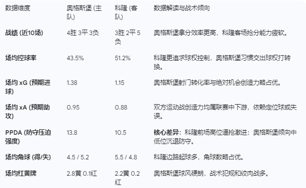 这是一场充满身体对抗且进球数大概率不高的比赛。奥格斯堡在战术相克、主场环境和高阶数据预期上均占据上风,科隆客场全取三分的难度极大。返回搜狐,查看更多