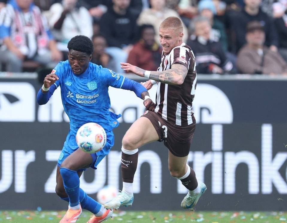 第90 1分钟,圣保利任意球被门将扑出,比赛结束。最终全场比赛结束,勒沃库森客场2-1击败圣保利。