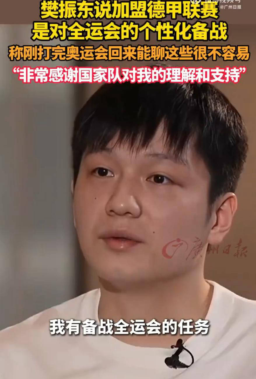 结束德甲比赛后,樊振东启程回国备战粤港澳大湾区全运会。抵达上海后,他将投入封闭训练,重点磨合技术战术配合并储备体能。全运会乒乓球比赛将于11月9日至11月21日举行,樊振东将代表上海队参加男单和男团比赛。樊振东在加盟德甲时曾表示,德甲之行是为了更好地备战全运会,同时对国家队的理解和支持表示感激。在全运会结束后,樊振东将继续参加乒超总决赛。萨尔布吕肯俱乐部确认,樊振东将在2025年12月乒超联赛结束后再次参加德甲比赛。