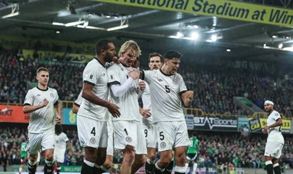 德甲直播,德甲赛程,德甲积分榜,拜仁vs多特直播,德甲比分预测/专为中文球迷打造的德甲资讯站,覆盖2025赛季直播入口、赛程安排、积分榜更新与竞彩比分预测,聚焦拜仁、多特、莱比锡、勒沃库森等焦点球队。世预赛欧洲区A组第四轮,德国队客场挑战北爱尔兰,最终凭借沃尔特马德的头球破门,1-0艰难取胜。 这场胜利让德国队豪取三连胜,继续以净胜球优势领跑小组。 但比赛过程远不如比分显示的轻松,德国队全场控球占优却进攻效率低下,依靠定位球才打破僵局。 北爱尔兰的顽强防守让德国战车屡次受挫,门将鲍曼的几次关键扑救力保球门不失。