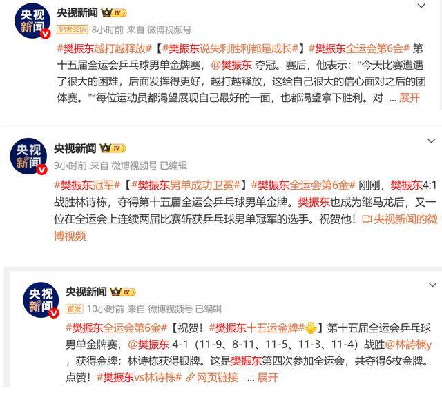 央视在亚锦赛国乒夺冠当天特意发文提及樊振东全运往绩并期待他本次比赛表现,更被视为管理层释放的积极信号。