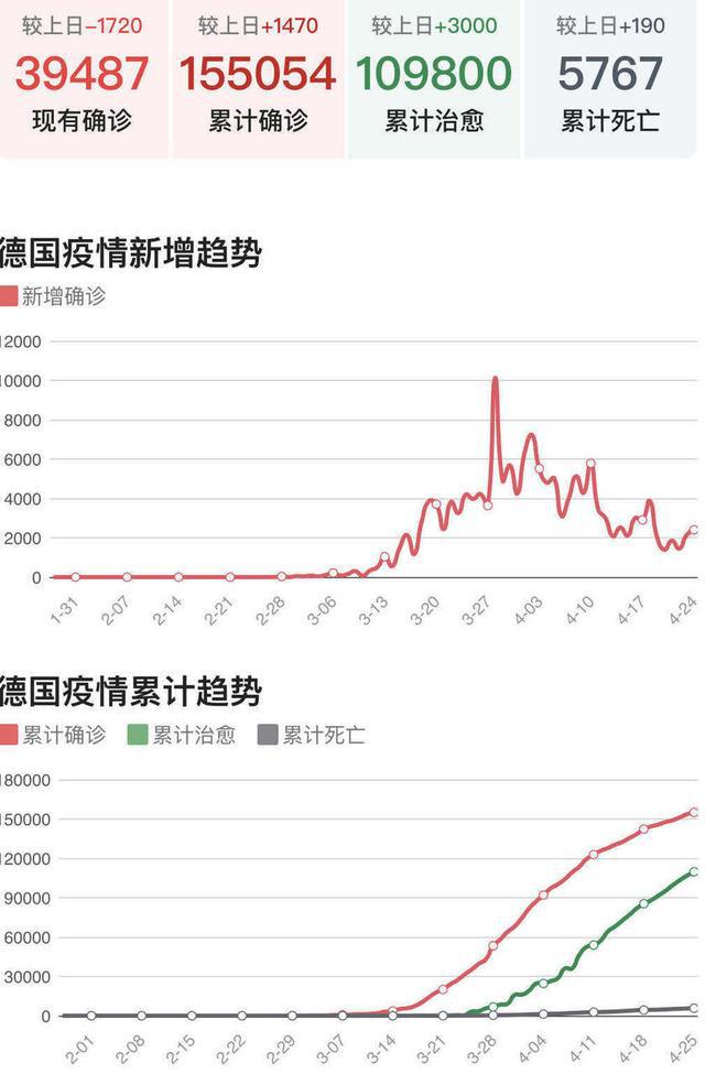 截止北京时间4月26日00:00,德国境内新冠肺炎确诊人数仅39487例,增长趋势逐渐放缓,各行各业迎来复工浪潮,是欧洲疫情最为乐观的国家之一。目前的情况是德甲重启确实有条件重启,成为五大联赛第一家“复工”的联赛。