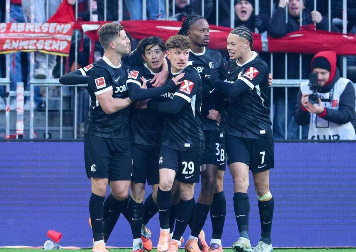 时间来到第三十八分钟,弗赖堡的铃木唯人试图再次威胁球门,他在禁区外带球内切后起脚远射,可惜皮球稍稍高出横梁。就在上半场即将结束的补时阶段,拜仁再次抓住机会,将比分扳平。奥利塞在禁区内接球后,果断抽射近角,球应声入网。面对如此角度刁钻的射门,对方门将的扑救显得力不从心,实属不该。上半场比赛结束,双方战成二比二平。上半场数据方面,拜仁占据了绝对优势,控球率高达百分之七十五,并完成了七次射门,攻入两球。而弗赖堡则在五次射门的情况下,同样打入了两个进球,展现了高效的进攻效率。
