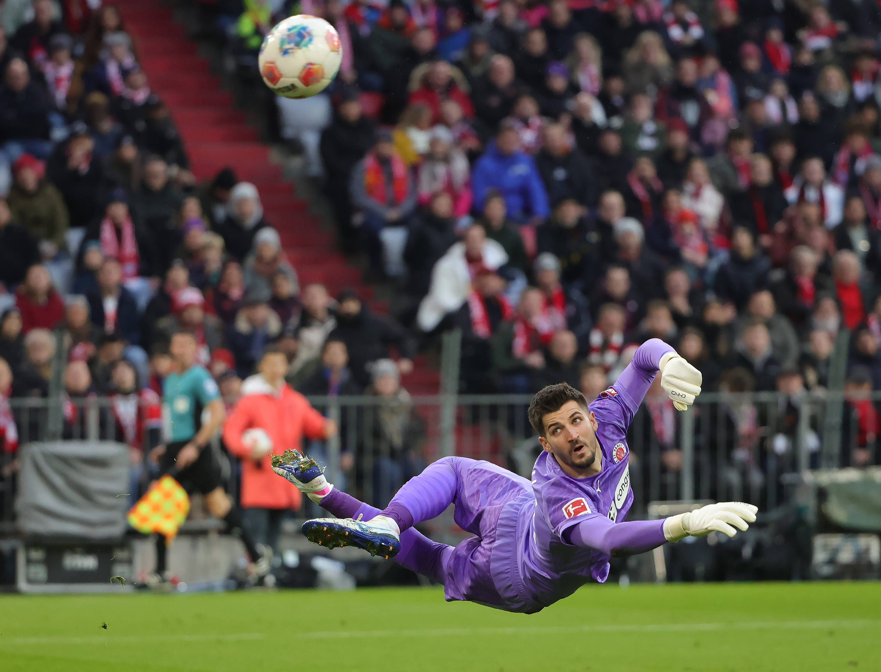 11月29日,圣保利队守门员瓦西里在比赛中扑救。 新华社发(菲利普·鲁伊兹摄)