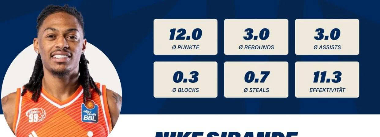 这位年轻球员出生于1999年,身高1米93,拥有丰富的欧洲联赛经验,曾效力于芬兰、西班牙和土耳其多国联赛。本赛季他代表德甲开姆尼茨队共出战12场,平均每场24.5分钟内可以贡献12分、3个篮板和3次助攻,投篮命中率达到46.1%,三分球命中率为34.8%,罚球命中率则为70.8%。在球队体系中,西班德既担任首发也处于重要轮换阵容,是第五得分点,显示出稳定的得分能力。