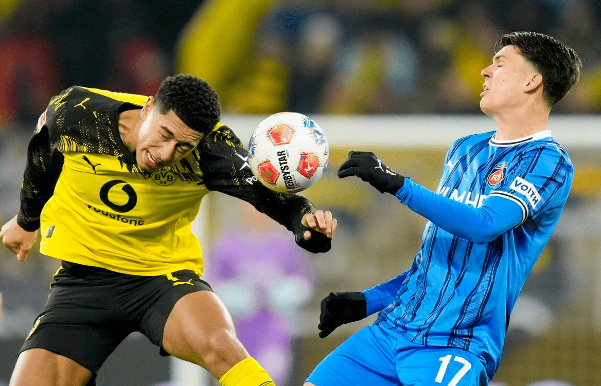 第40分钟,洪萨克犯规,被出示黄牌。4分钟后,多特蒙德进球了!门将出击接高空球脱手失误,安东抓住机会劲射破门。不过,很快海登海姆就扳平比分。尼许斯射门被挡出,倒在地上的他再射一脚,把球打进。半场结束,多特蒙德1-1海登海姆。多特蒙德上半场控球率66%,10次射门,3次射正,进了1球。而海登海姆上半场只有4次射门,同样进了1球。