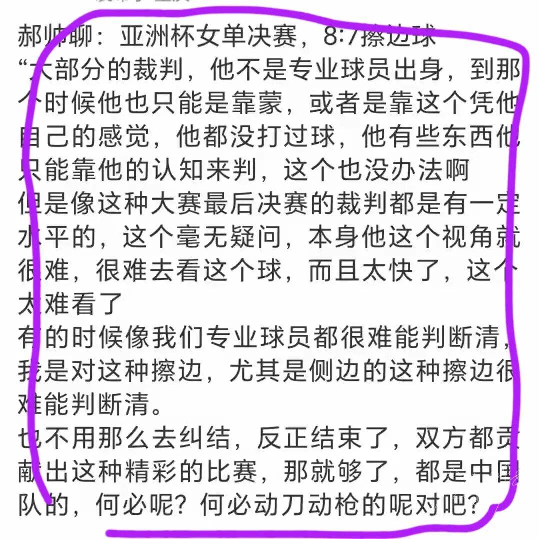 就在舆论愈演愈烈之时,前国乒选手郝帅在直播中公开发声,以专业视角点评这起争议球,也为身处风口浪尖的运动员说了句公道话。郝帅直言,比赛已经结束,胜利的一方已经赢得荣誉,实在没必要再追着失利的球员骂,这番话直击当下网络乱象,也道出了很多理性球迷的心声。