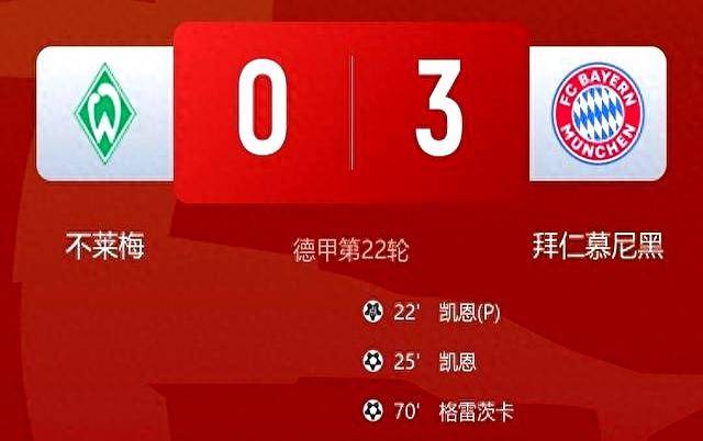 北京时间2月14日22点30分,德甲第22轮上演强弱对话。不莱梅在主场迎来霸主拜仁慕尼黑,开场仅20分钟就遭遇重创。拜仁小将伦纳特·卡尔在禁区制造点球,身价过亿的凯恩稳稳罚进左下角,门将巴克豪斯判断对方向却鞭长莫及。还没等不莱梅球员缓过神,5分钟后凯恩又用一记25米外贴地斩轰穿球门,皮球擦着立柱窜入网窝。
