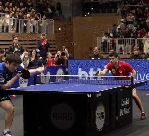 第三局,比赛进入了真正的阵地战。 彼此都对对方的技战术思路有了更深入的了解。 樊振东在接发球环节仍然出现了一些无谓的小失误,但这在激烈的对抗中也属正常。 毕竟,远在德国征战,又恰逢中国春节这个特殊的节日,运动员的心理和状态产生一些波动是可以理解的。 比分从开局就咬得很紧,一路战至3-3平。 随后,贾哈继续紧咬比分,双方的分差始终在一两分之间徘徊,比赛非常激烈。