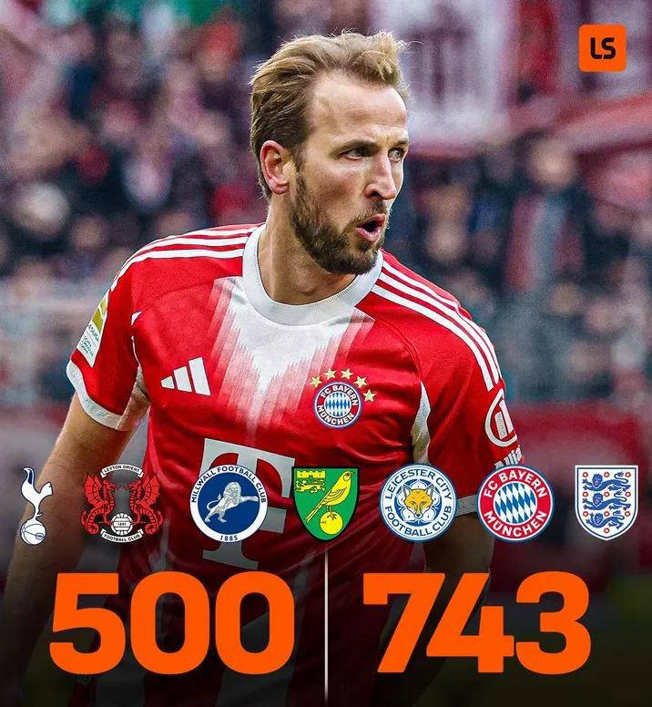 达成500球的凯恩自豪表示:“达到这个里程碑让我感到非常骄傲,这是我职业生涯中的一个重要时刻。”凯恩不仅在总进球数上展现非凡实力,他本赛季的德甲表现更加令人惊艳——只用了前22轮便狂砍26球,成功打破了穆勒保持已久的德甲前22轮最佳进球记录。此外,凯恩也成为德甲历史上首位连续三个赛季每季至少攻入25球的优秀射手。