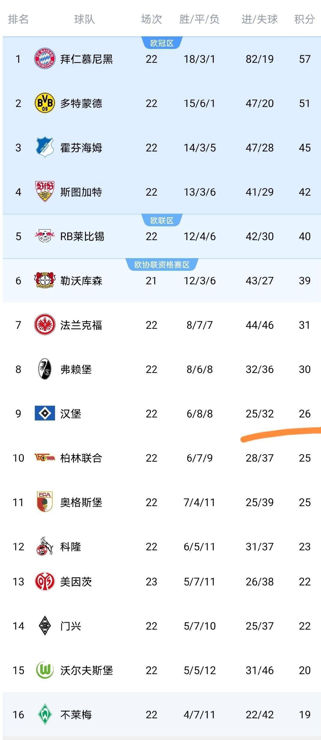 反过来看汉堡,他们赛前25分,排第9。 拿了这1分,变成26分。 这一分可太关键了,直接领先降级区9分。 9分,差不多是一个安全距离了。这支老牌劲旅,在德乙沉浮了好几年,去年好不容易被“抬”回德甲,赛季初还挣扎呢,现在看样子是真想留下来了。他们最近连续6轮不败,状态稳得很。